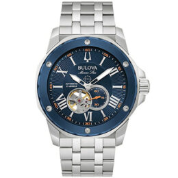 人気コレクション“マリンスター”の自動巻きモデル。20気圧防水の実用時計でありながら、気品にあふれるラグスポデザインが特徴です。ステンレススチールケースにネイビーの文字盤とラバーを合わせた爽やかなモデル。文字盤の7 時位置には、オープンハートを配し、機械式ならではのテンプの動きを見て楽しむことができます。ラバーストラップは表面と裏面で異なる配色にするなど、大人の遊び心を刺激します。