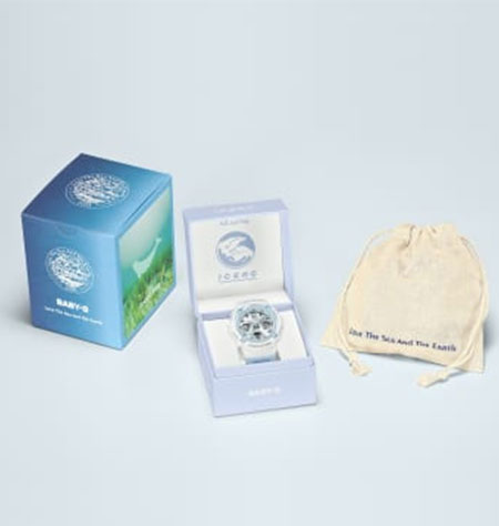 バンドには「ICERC Japan」のロゴをプリントし、裏蓋には「Love The Sea And The Earth」のシンボルマークを刻印。また、ベゼル、バンドの主な樹脂パーツにはバイオマスプラスチックを使用しています。