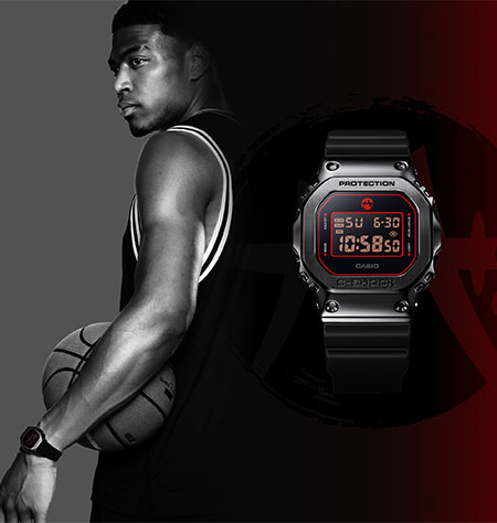 オールブラックに映える鮮やかなレッドのアクセントで、高みを目指して挑戦を続ける八村選手の強さと情熱を表現しました。ベゼルをはじめとしたメタルパーツにはIP処理を施し、質感を高めています。