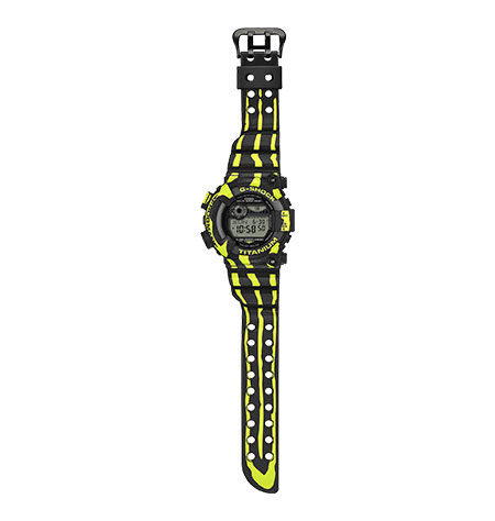 でこぼこの皮膚の質感はバンドとベゼルへのスプレー塗装で再現。さらに、ケース裏のカエルのキャラクター刻印もミスジヤドクガエルの縦縞模様を纏った特別仕様に仕上げています。