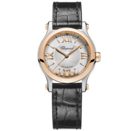 1976年以来、ショパールはハッピーダイヤモンドで時計業界に革命をもたらし、高い評価を得るとともにメゾンのアイコンコレクションを確立しました。時計界初となるデザインは、ウォッチのフェイス上にセットされた2枚のクリスタルサファイアの間でムービングダイヤモンドが揺れ動き、見る人の目を楽しませたのです。