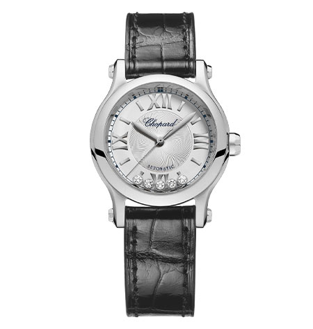 ショパールは、高度な時計製造技術を駆使し、フェミニンな「ハッピースポーツ 30 mm」のために特別に開発された機械式自動巻きムーブメントを搭載しました。