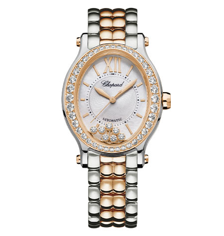 ショパールは、高度な時計製造技術を駆使し、フェミニンな「ハッピースポーツ オーバル」のために特別に開発された機械式自動巻きムーブメントを搭載しました。