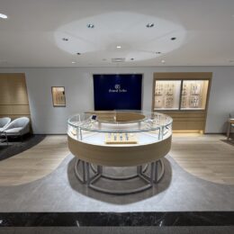 様々なジュエリーとも相性のよいツートーンカラーのケースと白蝶貝の文字板は、使いやすさを意識した日常にも馴染む配色です。
