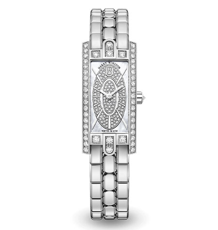 煌くダイヤモンドを楕円形にあしらったダイヤルデザインが特徴の「HW アヴェニューCミニ・エリプティック」。エレガントかつフェミニンな魅力を放ちます。