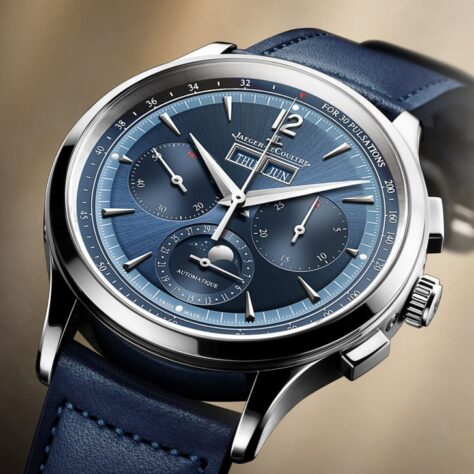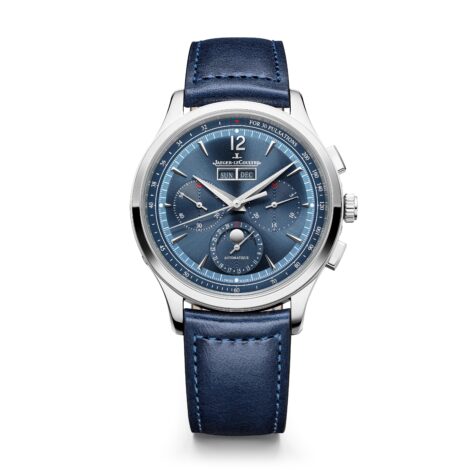 40mmのマスター・コントロール・クロノグラフ・カレンダーからは、飾らないコンテンポラリーなエレガンスが溢れています。ブラッシュとポリッシュ、両方の仕上げがタイムピースのタイムレスなスタイルを際立たせ、美しい均整を描くケースのアクセントとなる長方形のクロノグラフプッシャーがモダンな趣きを添えています。