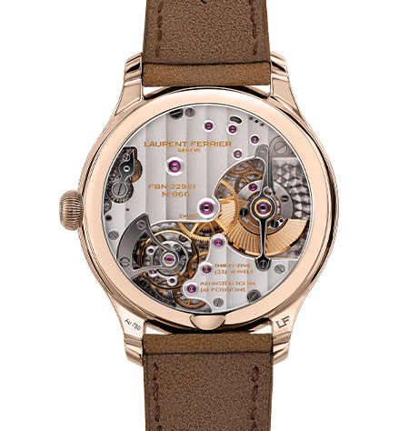 シンプルなクラシックケースの中には、かつてアブラアン・ルイ・ブレゲが考案したナチュラル脱進機から着想を得て開発された、ダブル・ダイレクトインパルス機構による脱進機が搭載されています。