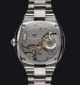 チタン製ケースの外装は丸みを帯びた緻密なカーブが相互に作用しており、スポーティでありながら曲線のシルエットが特徴的です。