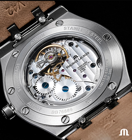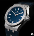 さらに、このモデルの為に採用されたホワイトステッチのブルーヌバックストラップにモーリス・ラクロア最上級モデルでもあるマスターピースラインに採用されている片開のバックルを初めて採用しています。