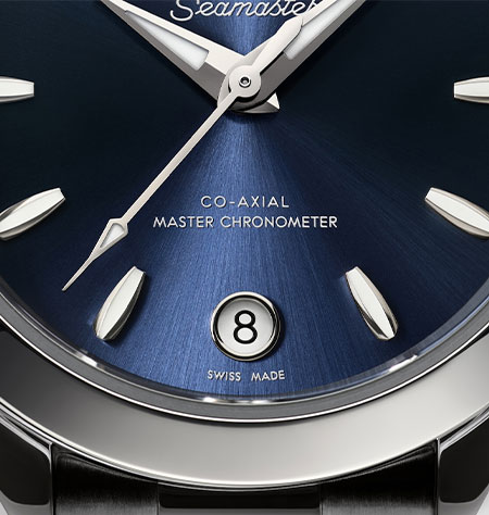オメガと海の豊かな歴史にオマージュを捧げる「シーマスター アクアテラ」。30mmのスリムなこのモデルは、洗練されたスタイルに、スイス連邦計量・認定局(METAS)認定の業界最高水準を誇るオメガ の革新的コーアクシャルマスター クロノメーター キャリバー8750を搭載しています。