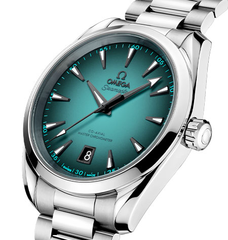 オメガと海の豊かな歴史にオマージュを捧げる「シーマスター アクアテラ」。 38mmのこのモデルは、ステンレススティール製のシンメトリーなケースを備え、海にインスピレーションを得た魅惑的なカラーに彩られています。