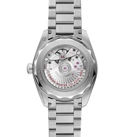 「レイルマスター」がもつ耐磁性のレガシーを継承する、コーアクシャル マスター クロノメーター キャリバー8806を搭載。15,000ガウスの耐磁性をもつこのムーブメントは、透明なサファイアクリスタルのケースバックを通して眺めることができます。