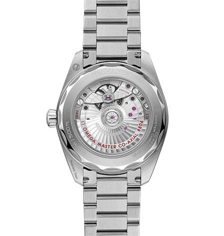 「レイルマスター」がもつ耐磁性のレガシーを継承する、コーアクシャル マスター クロノメーター キャリバー8804を搭載。15,000ガウスの耐磁性をもつこのムーブメントは、透明なサファイアクリスタルのケースバックから眺めることができます。