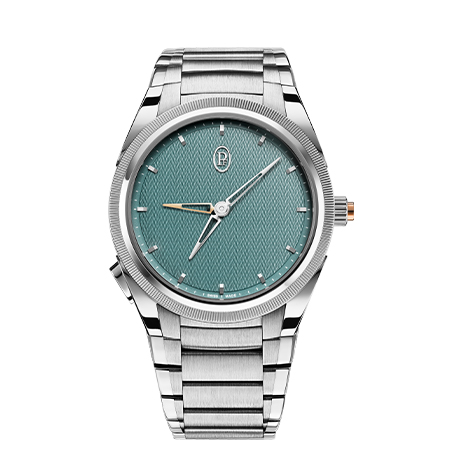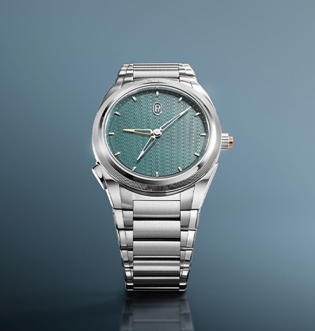 トンダPFGMTラトラパンテに、大胆な新色ヴェルツアスカ・グリーンが登場。このダイヤルは、スイスのヴェルツァスカ渓谷のクリスタルウォーターにインスピレーションを受けています。