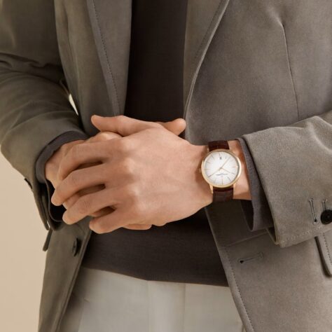 この18Kピンクゴールドの時計の持つ純粋さとエレガンスがタイムレスなデザインを作り出しています。