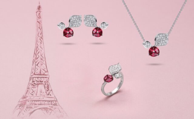 深みのあるルビーの輝きに、ピンクサファイアが時折見せる鮮やかなアクセントと、大小様々な形のダイヤモンドの煌めきが目を惹くコレクションとなっております。